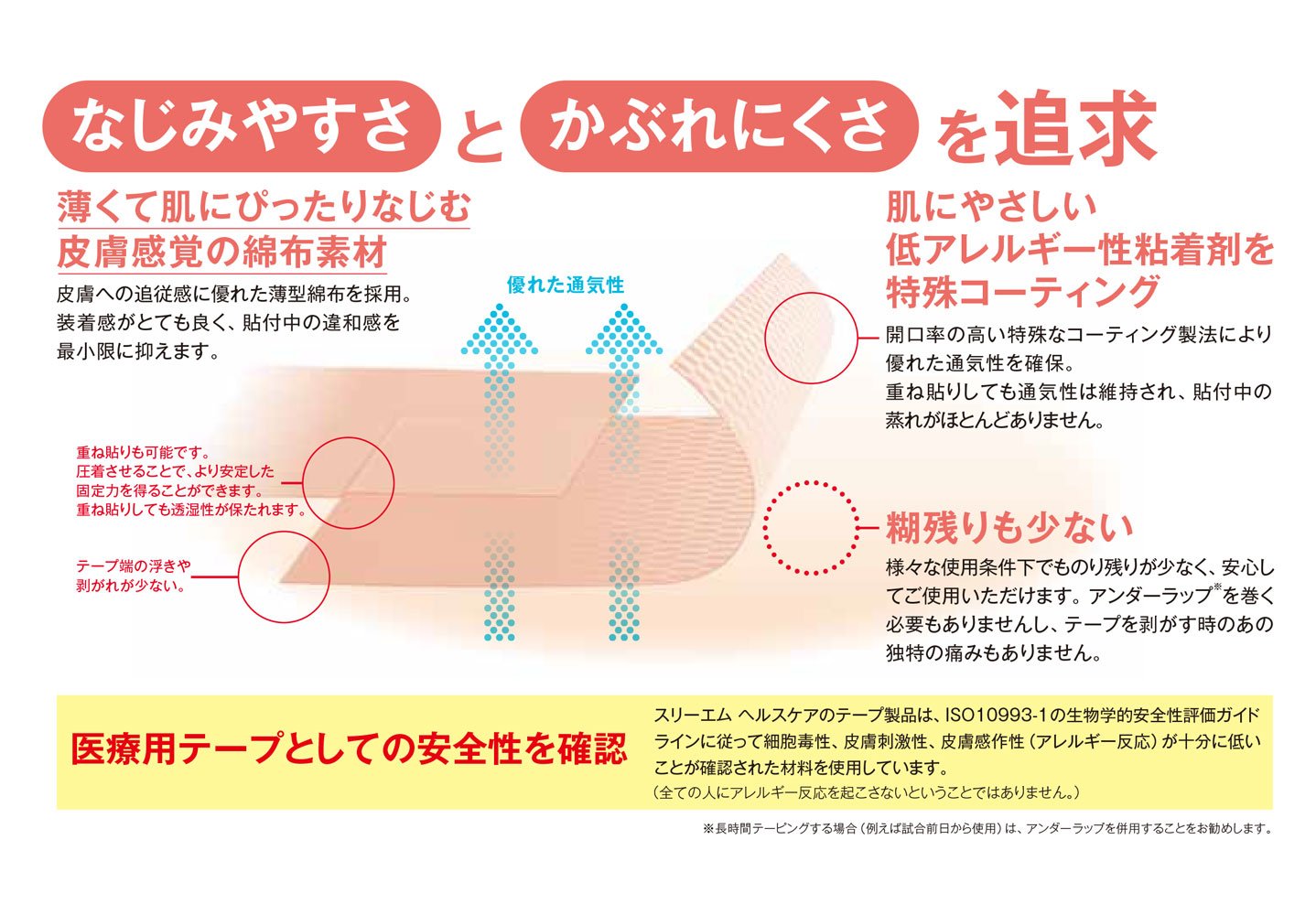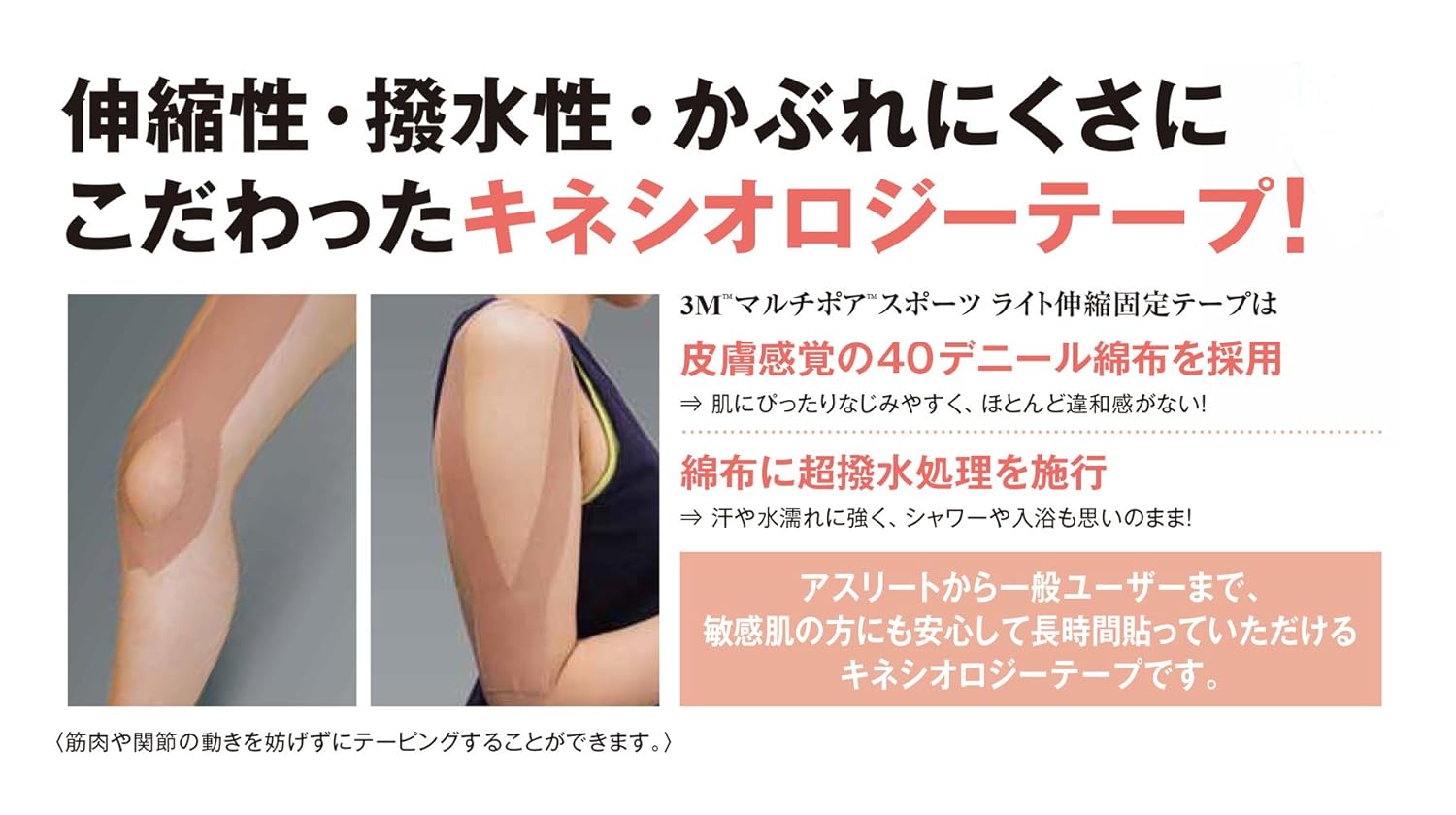 マルチポアスポーツ ライト伸縮固定テープ 返品不可 商品番号:06284200 入数: メーカー/販売代理店:3M 出荷予定:3~5日後 許可分類: 許可番号: 参考価格¥3,586(税込) 売価:¥2,689(税込) (税別¥2,445) まとめ買い価格 10個以上で1個あたり¥2,554円(税込)(税別¥2,322円) :1% タイプ2.5cm×5.0M 12巻012345678910111213141516171819202122232425262728293031323334353637383940414243444546474849503.75cm×5.0M 8巻012345678910111213141516171819202122232425262728293031323334353637383940414243444546474849505.0cm×33.0M 1巻012345678910111213141516171819202122232425262728293031323334353637383940414243444546474849505.0cm×5M 6巻012345678910111213141516171819202122232425262728293031323334353637383940414243444546474849507.5cm×5.0M 4巻01234567891011121314151617181920212223242526272829303132333435363738394041424344454647484950商品詳細説明伸縮性・撥水性・かぶれにくさにこだわったキネシオロジーテープ 皮膚感覚の40デニール綿布を採用、肌にピッタリなじみやすく、ほとんど違和感がありません。 綿布に超撥水処理を施しているから、汗や水濡れに強く、シャワーや入浴も思いのままです。 医療用テープとしての安全性が確認されているので安心にお使いいただけます。 どんな動きにも追従する伸縮性綿布だから、テープを貼った際の不快感も軽減。濡れてもすぐに乾く超撥水タイプだから、入浴やシャワーも心配ありません。 この商品を見た人は、このような商品も購入しています さらさプロテクションテープ 商品コード:06272401 定価:3,014円(税込)まとめ買い価格売価:2,305円(税込) 詳細を見る 富士商 ホット&スチームパッド 首・肩用 商品コード:06229307 定価:4,950円(税込)まとめ買い価格売価:2,821円(税込) 詳細を見る 綿花 4cm×4cm 500g 商品コード:06030002 定価:1,650円(税込)売価:1,045円(税込) 詳細を見る やわらかペーパー スリッパ DX ホワイト 25組 50枚入り 商品コード:17001021 定価:4,620円(税込)売価:3,168円(税込) 詳細を見る ディスポカバーTP 500枚 商品コード:09030101 オープン価格売価:3,355円(税込) 詳細を見る