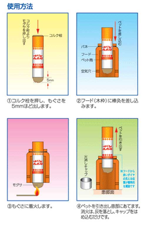 カマヤペット 6本入 返品不可 商品番号:05055006 入数:棒灸6本 メーカー/販売代理店:カマヤ 出荷予定:3~5日後 許可分類: 許可番号: 参考価格 ¥8,580(税込) 売価:¥6,177 (税別¥5,616) まとめ買い価格 3個以上で1箱あたり¥5,991円(税込)(税別¥5,447円) :0ポイント 数量: 箱 商品詳細説明肩こり・筋肉痛に気持ちのよい温度のお灸 肩こり痛み等の慢性の痛みに、家庭でできる温灸療法カヤマペットは気持ちの良い温度で治療ができる温灸です。 手軽な温灸器お灸は初めてという方におすすめします。使い方はいたって簡単。筒につまったもぐさをフード(木枠)にはめ込むだけ。ほどよいお灸のあたたかさが徐々に浸透してコリを広くとらえます。おなかなどの広い範囲やひとりで肩や腰などにお灸をするときに最適です。 ご使用方法 (1)カヤマペットの消火用のキャップを取りはずす。 (2)カヤマペットを支え、コルクを押し、もぐさを5mm程度出しもぐさに点火する。 (3)カヤマペットと皮膚の間隔を10mm~15mm離して温める。 (4)終了する場合は、キャップを完全にかぶせ、熱が冷めるまで安全な場所に置く。 ・10分以上使用する場合、10分に1回の割合で灰を落とす。(灰を落とす際は、逆さにしてから消火用キャップで灰を削るようにして、灰皿等の安全なものに落とすこと。灰落とし後は、元の状態に戻し治療を再開すること) 関連商品 カマヤペット セット この商品を見た人は、このような商品も購入しています 台座灸 和(なごみ)200個入 商品コード:05400011 定価:2,420円(税込)まとめ買い価格売価:1,376円(税込) 詳細を見る 灸点紙 (200点入) 商品コード:05047001 定価:880円(税込)売価:712円(税込) 詳細を見る 長生灸 1000壮 商品コード:05024002-s 定価:14,641円(税込)まとめ買い価格売価:7,150円(税込) 詳細を見る 大和漢 極 180コ入 商品コード:05200051 定価:2,420円(税込)まとめ買い価格売価:1,204円(税込) 詳細を見る カマヤ 灸頭鍼用 温暖(炭化艾480ケ入) 商品コード:05042014 定価:12,760円(税込)売価:10,990円(税込) 詳細を見る