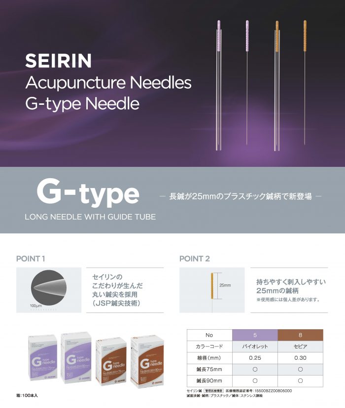 セイリン鍼 Gタイプ 100本入 返品不可 商品番号:01046235 入数:100本入 メーカー/販売代理店:セイリン 出荷予定:3~5日後 許可分類:管理医療機器 許可番号:15500BZZ00505000 参考価格¥3,740(税込) 売価:¥3,300(税込) (税別¥3,000) :1% ■ 有資格者選択してくださいはい 「有資格者」とは、鍼灸師、医師のことです タイプ5番8番2寸5分01234567891011121314151617181920212223242526272829303132333435363738394041424344454647484950012345678910111213141516171819202122232425262728293031323334353637383940414243444546474849503寸0123456789101112131415161718192021222324252627282930313233343536373839404142434445464748495001234567891011121314151617181920212223242526272829303132333435363738394041424344454647484950商品詳細説明長鍼タイプ 「JSPタイプ」と同じく丸い鍼尖を採用。 深部にもやさしい刺激を与えられます。 鍼柄は25mmのプラスチック鍼柄。 2寸5分(75mm) 3寸(90mm) 5番(0.25mm) 8番(030mm) この商品を見た人は、このような商品も購入しています セイリン鍼 J-Sakura 100本入 商品コード:01046300 定価:2,310円(税込)まとめ買い価格売価:1,375円(税込) 詳細を見る NEOディスポ鍼 4本パック 240本入 商品コード:01212012-y 定価:3,630円(税込)まとめ買い価格売価:1,617円(税込) 詳細を見る セイリン鍼 J-Sakura15 100本入 商品コード:01046400 定価:2,420円(税込)まとめ買い価格売価:1,540円(税込) 詳細を見る SARASA メディカルニードル 240本 商品コード:01093001 定価:2,530円(税込)まとめ買い価格売価:1,606円(税込) 詳細を見る NEO ディスポ鍼SPタイプ 100本入 商品コード:01213003 定価:1,870円(税込)まとめ買い価格売価:869円(税込) 詳細を見る