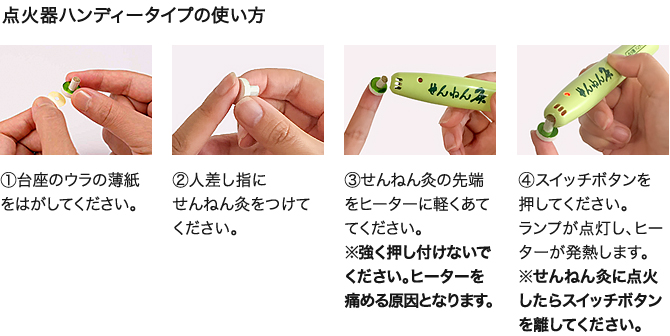 せんねん灸点火器ハンディータイプ 返品不可 商品番号:05040005 入数:1個 メーカー/販売代理店:セネファ 出荷予定:2~3日後 許可分類: 許可番号: 参考価格 ¥3,300(税込) 売価:¥2,145 (税別¥1,950) :0ポイント 数量: 個 商品詳細説明ライターもマッチも必要ありません。安全で簡単に着火できるせんねん灸オリジナル点火器ハンディータイプです。※せんね灸専用 電池付 「せんねん灸の奇跡」にはご使用いただけません 関連製品 せんねん灸オフシリーズ この商品を見た人は、このような商品も購入しています 台座灸 和(なごみ)200個入 商品コード:05400011 定価:2,420円(税込)まとめ買い価格売価:1,376円(税込) 詳細を見る 灸点紙 (200点入) 商品コード:05047001 定価:880円(税込)売価:712円(税込) 詳細を見る 長生灸 1000壮 商品コード:05024002-s 定価:14,641円(税込)まとめ買い価格売価:7,150円(税込) 詳細を見る 大和漢 極 180コ入 商品コード:05200051 定価:2,420円(税込)まとめ買い価格売価:1,204円(税込) 詳細を見る カマヤ 灸頭鍼用 温暖(炭化艾480ケ入) 商品コード:05042014 定価:12,760円(税込)売価:10,990円(税込) 詳細を見る