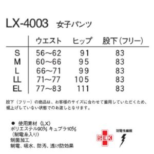 女子パンツ LX-4003 返品不可 商品番号:1320011 入数:1枚 メーカー/販売代理店:ナガイレーベン 出荷予定:2~3日後 許可分類: 許可番号: 参考価格 ¥7,370(税込) 売価:¥5,896 (税別¥5,360) :54ポイント サイズ 選択してください S M L LL EL 数量: 枚 商品詳細説明ナガイレーベンの女子パンツです。 極めて高い透け防止効果、ストレッチ性が有ります。 特殊な糸使いにより、肌に触れるとヒヤっとする接触冷感素材です。 ニット素材のため、通気性があり、防皺性にも優れています。 業務用洗濯にも耐えうる形態安定素材です。 この商品を見た人は、このような商品も購入しています 外皮消毒剤 エスクリンα (アルファ) ONE 200包入 商品コード:06030101 定価:1,603円(税込)売価:1,287円(税込) 詳細を見る 外皮消毒剤 消エタ・バリュー 500ml 商品コード:10011203 オープン価格まとめ買い価格売価:464円(税込) 詳細を見る アルコール綿K(100枚個包装) 商品コード:06030105 定価:440円(税込)売価:385円(税込) 詳細を見る 外皮消毒剤 消エタ・バリュー 5L 商品コード:10011204 オープン価格売価:3,850円(税込) 詳細を見る 耳にやさしいサージカルマスク 長谷川綿行 1箱 50枚 VFE BFE PFE 99%カット 商品コード:10030062 定価:847円(税込)まとめ買い価格売価:501円(税込) 詳細を見る