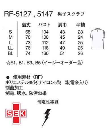 男子スクラブ RF-5147 返品不可 商品番号:13200015 入数:1枚 メーカー/販売代理店:ナガイレーベン 出荷予定:3~5日後 許可分類: 許可番号: 参考価格 ¥8,470(税込) 売価:¥6,776 (税別¥6,160) :62ポイント サイズ 選択してください S M L LL BL 色選択 選択してください ターコイズ+ネイビー ロイヤルブルー+ネイビー 数量: 枚 商品詳細説明フロントファスナー開きの男性専用スクラブです。 涼感素材のニットが快適な着心地を提供します。 ・RF (ポリエステル95%、ナイロン5%(制電糸入り)) 制菌加工 制電、吸水、防汚効果 ・冷感が優れている ・通気性が良い ・短時間で吸水する この商品を見た人は、このような商品も購入しています 外皮消毒剤 エスクリンα (アルファ) ONE 200包入 商品コード:06030101 定価:1,603円(税込)売価:1,287円(税込) 詳細を見る 外皮消毒剤 消エタ・バリュー 500ml 商品コード:10011203 オープン価格まとめ買い価格売価:464円(税込) 詳細を見る 外皮消毒剤 消エタ・バリュー 5L 商品コード:10011204 オープン価格売価:3,850円(税込) 詳細を見る 耳にやさしいサージカルマスク 長谷川綿行 1箱 50枚 VFE BFE PFE 99%カット 商品コード:10030062 定価:847円(税込)まとめ買い価格売価:501円(税込) 詳細を見る 外皮消毒剤 消エタ・バリュー 10L 商品コード:10011205 オープン価格売価:7,150円(税込) 詳細を見る