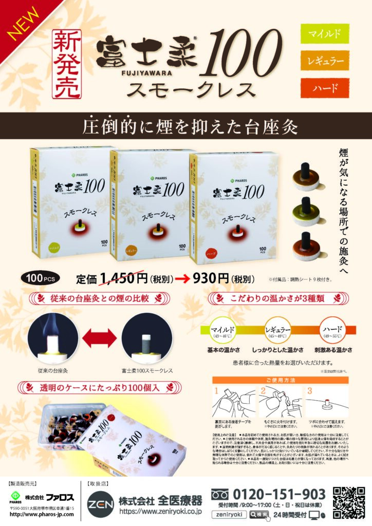 富士柔100 スモークレス 返品不可 商品番号:05208040 入数:100個 メーカー/販売代理店:ファロス 出荷予定:1~2日後 許可分類: 許可番号: 参考価格¥1,595(税込) 売価:¥1,023(税込) (税別¥930) まとめ買い価格 6個以上で1個あたり¥971円(税込)(税別¥883円) :1% :サンプル有り タイプマイルドレギュラーハード040012345678910111213141516171819202122232425262728293031323334353637383940414243444546474849500410123456789101112131415161718192021222324252627282930313233343536373839404142434445464748495004201234567891011121314151617181920212223242526272829303132333435363738394041424344454647484950商品詳細説明仕様変更の為、現在受注できません 変更完了時期:2025年4月1日予定 ヨモギ100%の炭化艾で匂いを抑え煙も気にならない 従来のお灸では煙が気になり使用できなかった場所での施灸に 熱量は基本の温かさ~刺激ある温かさまでの3種類(マイルド・レギュラー・ハード) 入数 100個 付属品 温調シート9枚 この商品を見た人は、このような商品も購入しています 台座灸 和(なごみ)200個入 商品コード:05400011 定価:2,420円(税込)まとめ買い価格売価:1,376円(税込) 詳細を見る 灸点紙 (200点入) 商品コード:05047001 定価:880円(税込)売価:712円(税込) 詳細を見る 長生灸 1000壮 商品コード:05024002-s 定価:14,641円(税込)まとめ買い価格売価:7,150円(税込) 詳細を見る 大和漢 極 180コ入 商品コード:05200051 定価:2,420円(税込)まとめ買い価格売価:1,204円(税込) 詳細を見る カマヤ 灸頭鍼用 温暖(炭化艾480ケ入) 商品コード:05042014 定価:12,760円(税込)売価:10,990円(税込) 詳細を見る