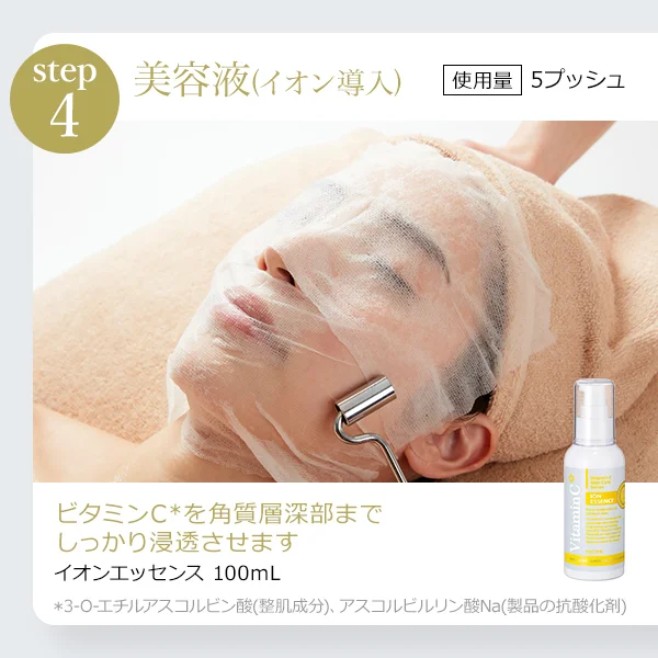 【プロズビ】VITAMIN C イオンエッセンス 100mL 返品不可 商品番号:14007013 入数:100ml メーカー/販売代理店: 出荷予定:2~3日後 許可分類: 許可番号: 参考価格 ¥2,200(税込) 売価:¥1,980 (税別¥1,800) まとめ買い価格 3~4個で1個あたり¥1,920円(税込)(税別¥1,746円)5個以上で1個あたり¥1,881円(税込)(税別¥1,710円) :18ポイント 数量: 個 商品詳細説明【2種のビタミンC+プラセンタ配合!ワントーン明るい肌へ】 美容成分を凝縮した濃密な美容液 2種類のビタミンCに加えプラセンタ、アルブチン、セラミド、5種類のヒアルロン酸を配合。 凝縮した美容成分が潤いを与え、内側からふっくらとしたハリと自然なツヤを引き出します。 イオン導入でご使用の場合は-(マイナス)で導入してください。美容液としてそのまま肌に塗布することも可能です。 フレッシュシトラスの香り ビタミンC:3-0-エチルアスコルビン酸(整肌成分)、アスコルビルリン酸Na(製品の抗酸化剤) 成分/原料 水、BG、グリセリン、ベタイン、アスコルビルリン酸Na、3-0-エチルアスコルビン酸、プラセンタエキス、アルブチン、加水分解ダイズエキス、ヒアルロン酸Na、加水分解ヒアルロン酸、ヒアルロン酸ヒドロキシプロピルトリモニウム、ヒアルロン酸クロスポリマーNa、アセチルヒアルロン酸Na、セラミドNP、アラントイン、パンテノール、ビスPEG-18メチルエーテルジメチルシラン、PEG-60水添ヒマシ油、カルボマー、キサンタンガム、トロメタミン、ポリアクリル酸グリセリル、β-グルカン、EDTA-2Na、酢酸トコフェロール、ポリグルタミン酸、オクチルドデカノール、水添レシチン、1,2-ヘキサンジオール、ペンチレングリコール、カプリリルグリコール、フェノキシエタノール、クロルフェネシン、香料 使用方法 エステ機器使用の場合:コットンまたはガーゼに含ませて顔に塗布します。 美容液として使用の場合:化粧水で肌を整えた後、適量をとり顔全体になじませます。 注意事項 商品について: 写真のイメージと実物とは色、模様など多少異なる場合がございます。 入荷時期により、商品の仕様(デザイン、サイズ、カラー、素材、表記など)が変更する場合があります。 ご使用について: お肌に合わない場合は、ご使用をおやめください。 使用中、または使用後に異常があらわれた場合は使用を中止し、皮膚科専門医にご相談されることをおすすめします。そのまま使用を続けますと、悪化する恐れがあります。 傷・はれもの・湿疹等の異常がある時や、お肌に異常がある時や合わない時は、使用しないでください。 目に入った時は、すぐに洗い流してください。 保存/保管/期限について: 直射日光のあたる場所には保管しないでください。乳幼児の手の届かない場所に保管してください。 返品/交換について: 不良品、欠品につきましては商品到着後、1週間以内にご連絡ください。 お客様のご都合による返品、交換はできません。 メーカー/ブランド SEVEN BEAUTY 株式会社/PROSBi (プロズビ) 製造国/原産国 韓国 容量 100ml この商品を見た人は、このような商品も購入しています 耳針療法のためのポイントマスター(図鑑セット付) 商品コード:12007001 定価:4,180円(税込)売価:3,938円(税込) 詳細を見る 【プロズビ】プライムライン イオンエッセンス 高濃度ビタミンC 60mL 商品コード:14007010 定価:5,280円(税込)売価:2,915円(税込) 詳細を見る 【ノンオイル】マッサージ ノイル 4L 商品コード:14071082 定価:9,680円(税込)売価:6,787円(税込) 詳細を見る 国産よもぎ100% よもぎ茶 業務用100袋入 商品コード:14099021 定価:4,320円(税込)売価:3,780円(税込) 詳細を見る