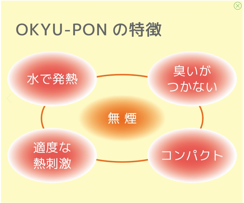 OKYU-PON (おきゅポン) 24粒入 返品不可 商品番号:05050006 入数:24枚 メーカー/販売代理店:field_695b470a51387 出荷予定:3~5日後 許可分類: 許可番号: 参考価格 ¥2,112(税込) 売価:¥2,112 (税別¥1,920) :20ポイント 数量: 個 商品詳細説明火を使わずに、ツボとその周辺を温熱刺激します。体調に合わせて、安全に貼りなおしも可能。無煙、無臭で洋服や部屋にニオイが移らず、どこでも使用できます。1回5分でOK。ちょっとした時間に簡単セルフケア。 この商品を見た人は、このような商品も購入しています 【新年のご挨拶に】初湯 20g×3包(薬草入浴剤) 商品コード:14062003 定価:660円(税込)売価:550円(税込) 詳細を見る ガラスカッピング 吸着具8号G 商品コード:08008031 定価:8,360円(税込)まとめ買い価格売価:7,942円(税込) 詳細を見る CIANA シリコーンカッピング(6個入) 商品コード:08007201 定価:5,940円(税込)売価:5,049円(税込) 詳細を見る CIANA シリコーンカッピング M (4個入) 商品コード:08007202 定価:5,940円(税込)売価:5,049円(税込) 詳細を見る