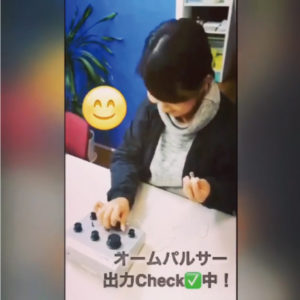 ①本体の出力ジャックに「出力チェックイヤホン」を差し込む