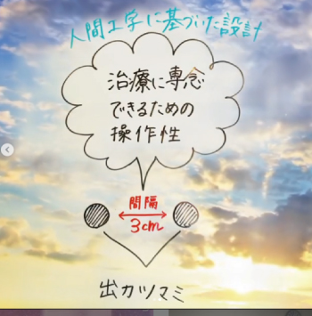 治療に専念できるための操作性 全医療器の製品は 治療家が治療に専念できるための操作性を重視しております。 その一つに機器の【出力ツマミの間隔】があります。 オームパルサーは全て出力ツマミ間隔を【3㎝以上空けて】 ヒヤリハットや医療のリスクに配慮しています。 さらに、出力操作を手の感覚で行えることで 患部の変化に集中できる環境作りを実現しました。