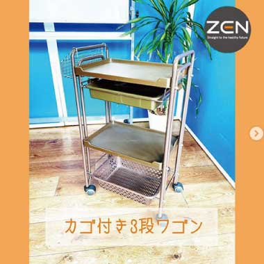 カゴ付3段ワゴン(ホワイト・ブラウン)