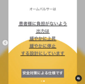 オームパルサーの出力は、緩やかに上昇、下降する設計になっています。