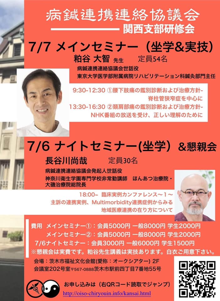 ※ 7/7 メインセミナー①, ②は実技を含みますので、白衣をご持参いただきます。お忘れにならないように願います。