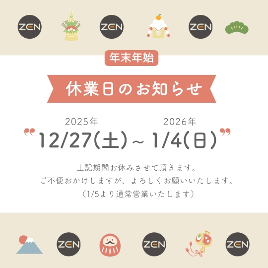 誠に勝手ながら、年末年始の休業を下記のようにさせていただきます。